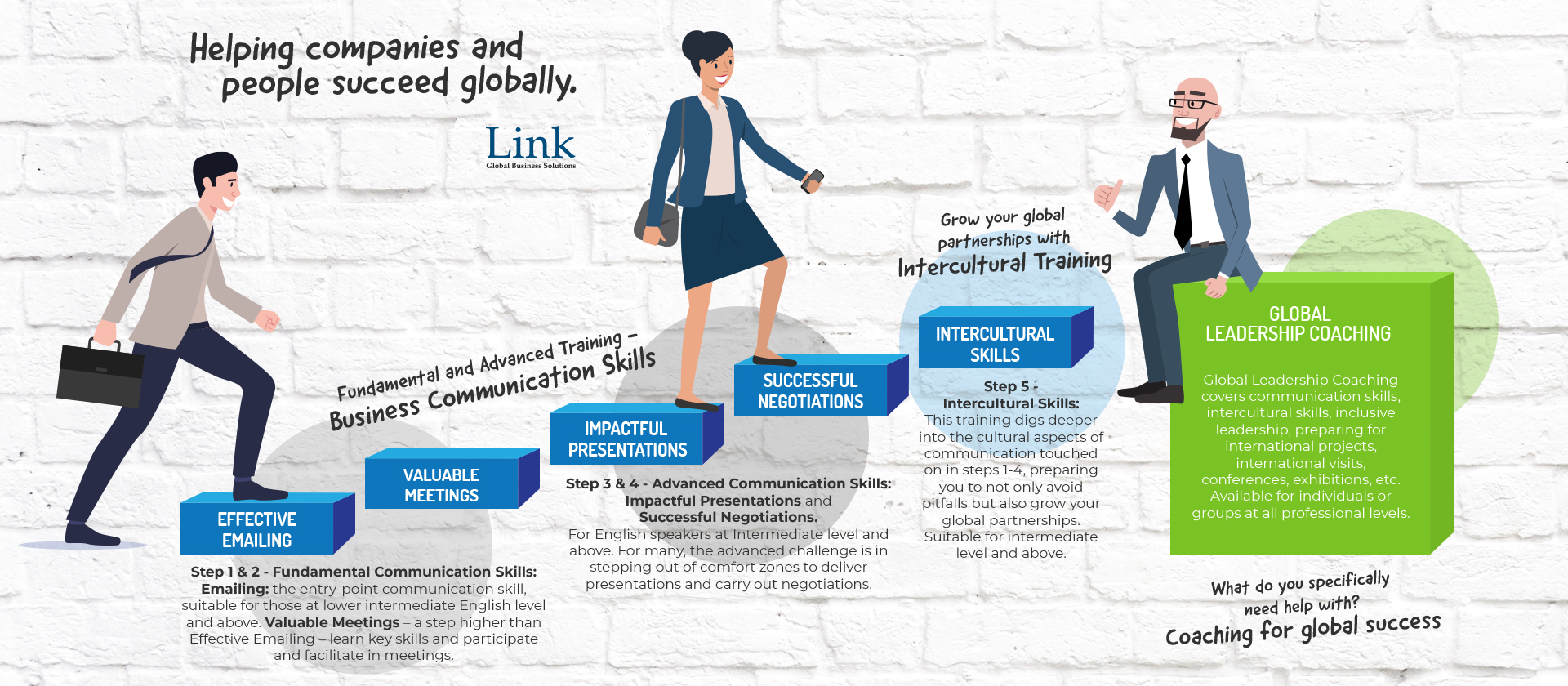 Great communication is vital when working internationally. Fluency in a language is not enough to succeed across borders. People who are working globally are emailing, facilitating meetings, presenting and negotiating every day. Understanding, practising and improving the situational language and skills in these daily business activities, whilst also being culturally competent will help you achieve global success.